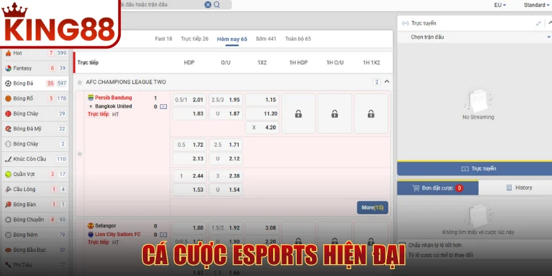 Bắt kịp xu hướng giải trí hiện nay, nền tảng phát triển mạnh mảng esports với các tựa game nổi tiếng như Dota 2, Liên Minh Huyền Thoại. Hội viên KING88 không chỉ được theo dõi các trận đấu đỉnh cao mà còn có thể tham gia nhiều loại kèo hấp dẫn. Chẳng hạn như đội thắng, mạng hạ gục đầu tiên hay tổng số kill, mang đến trải nghiệm hiện đại, mới mẻ, đầy khác biệt.